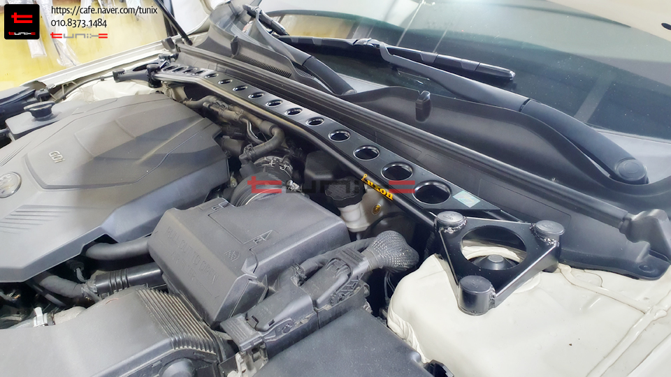 엔진룸에 든든하게 룩손스트럿바 장착을 완료하였습니다