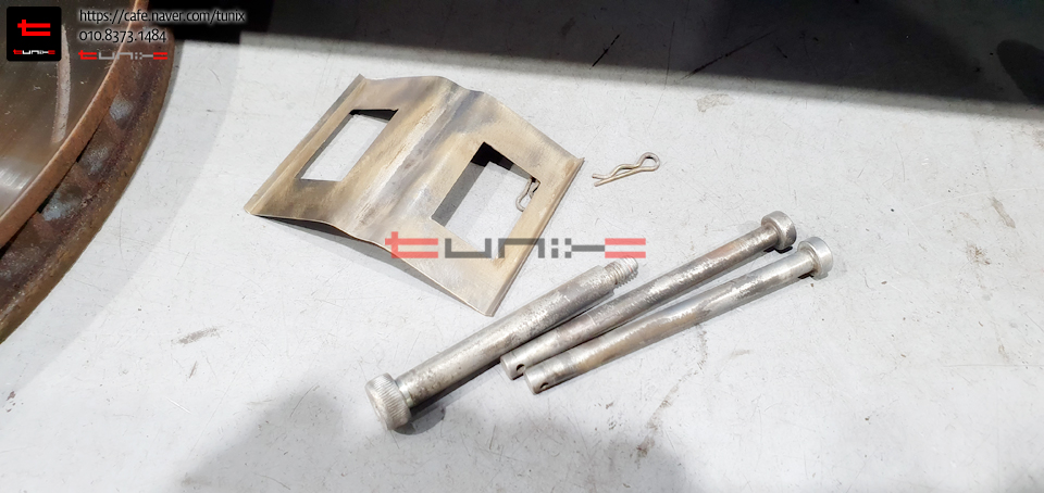 패드교체를 위해서 탈착한 패드핀과 리턴클립을 먼저 깨끗히 세척해줍니다