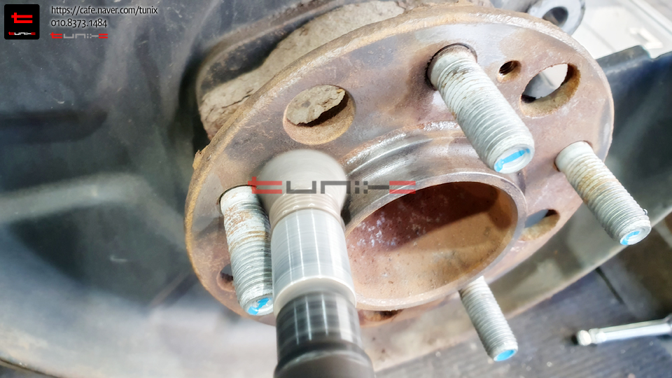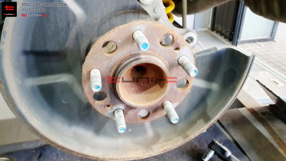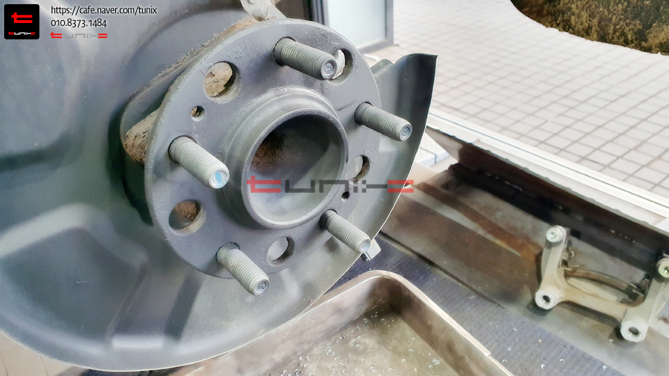 순정 브레이크를 탈착후 허브에 녹을 깨끗히 제거해줍니다