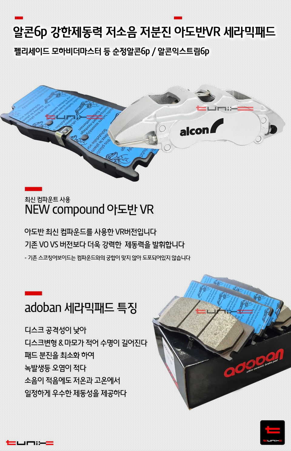 알콘6p패드 alcon 아도반VR세라믹 브레이크패드 펠리세이드 모하비더마스터 : 튜닉스-TUNIX
