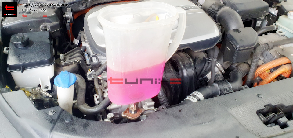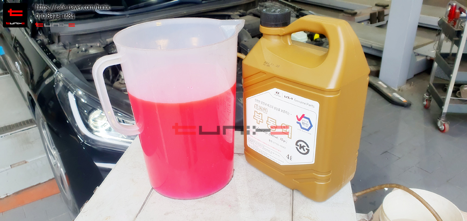 순정핑크색 최고급 부동액을 정량에 맞게 넣어줍니다
