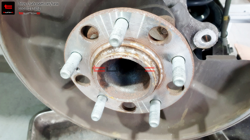 순정 브레이크를 탈착후 허브에 녹을 깨끗히 제거해줍니다
