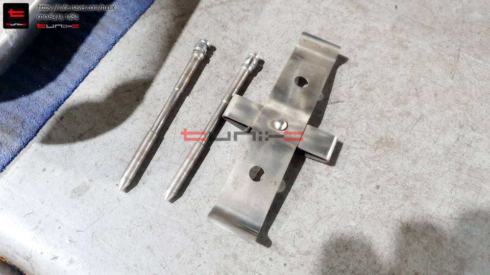 패드교체를 위해서 탈착한 패드핀 리턴클립을 먼저깨끗히 세척해줍니다