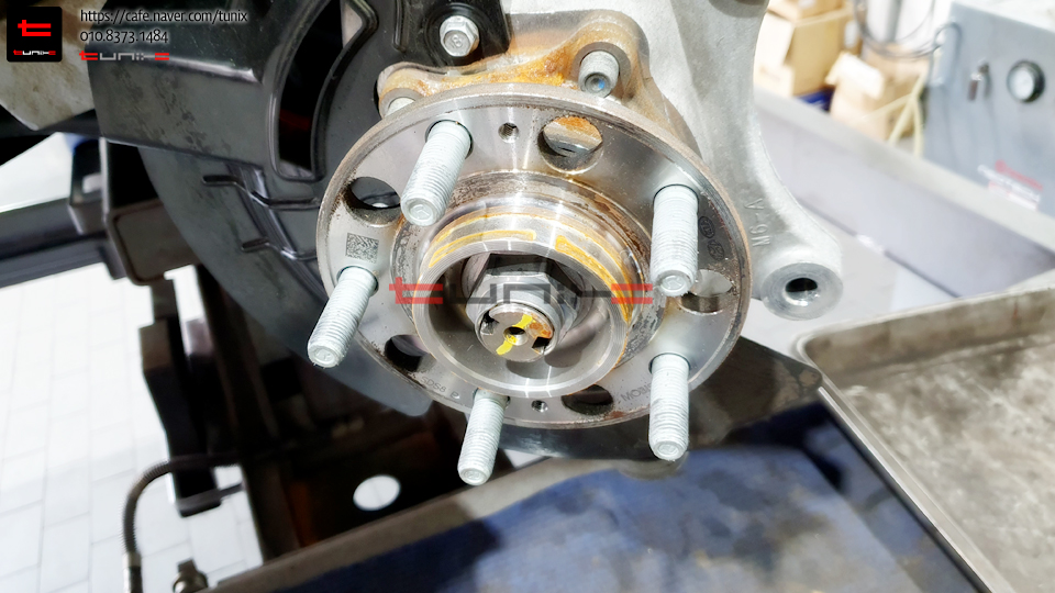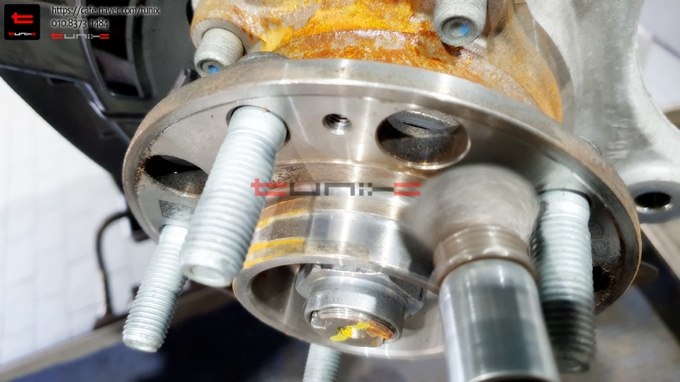 순정 브레이크를 탈착후 허브에 녹을 깨끗히 제거해줍니다