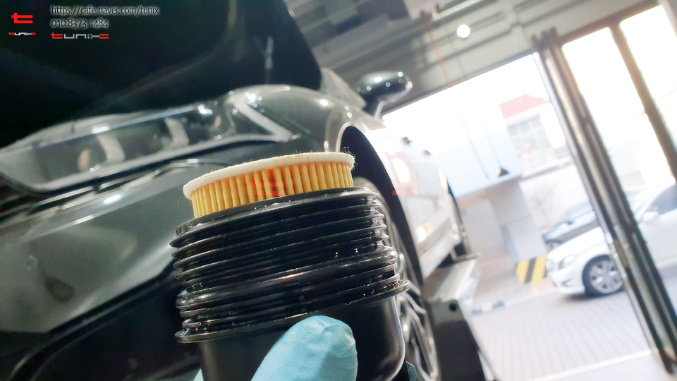 오일교환을 위해서 잔유제거까지 깔끔하게 교환하는 튜닉스로 방문하였습니다