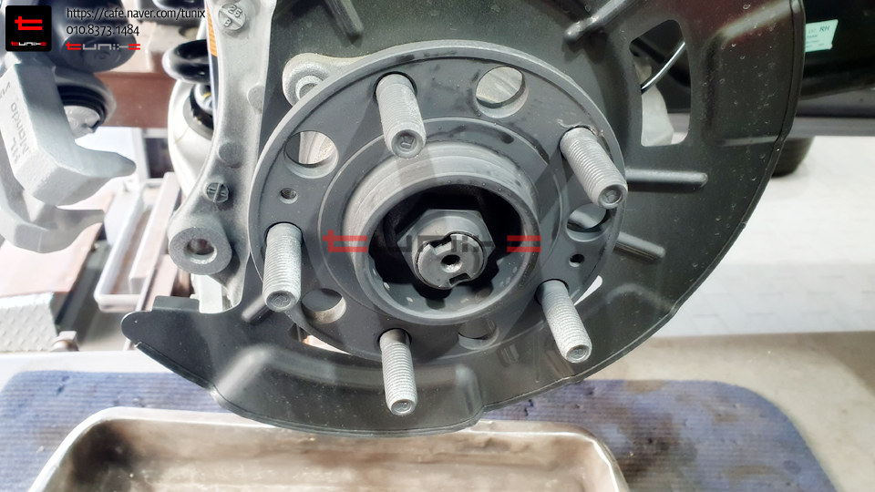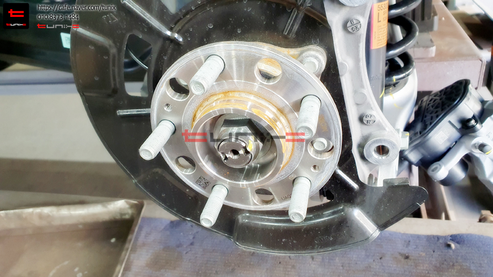 순정 브레이크를 탈착후 허브에 녹을 깨끗히 제거해줍니다
