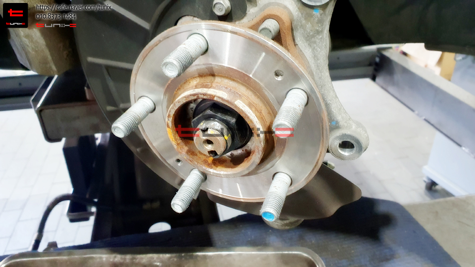 순정 브레이크를 탈착후 허브에 녹을 깨끗히 제거해줍니다