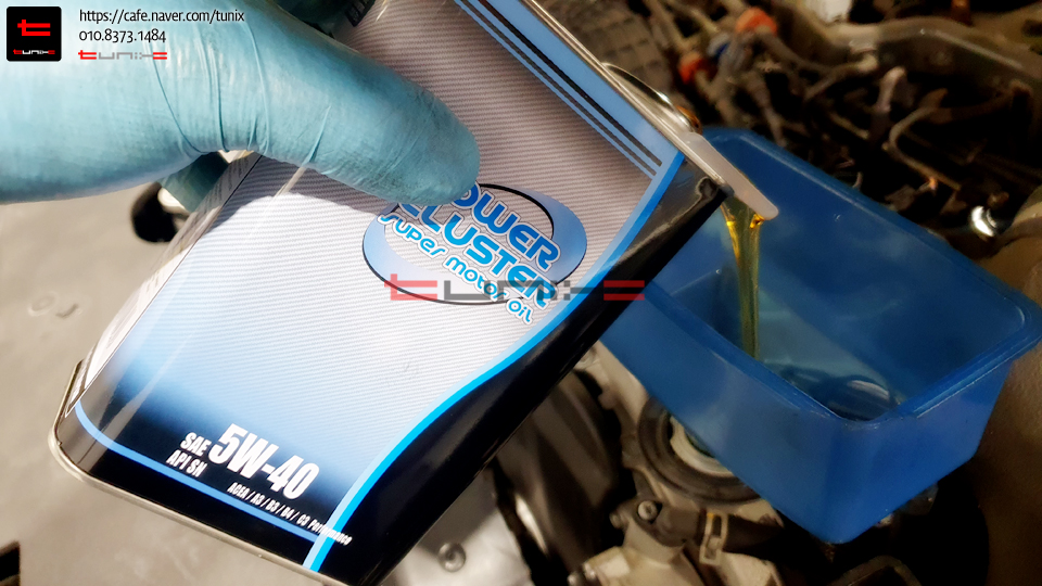 기존오일을 모두빼고 남아 있는 잔유는 전용드레인기를