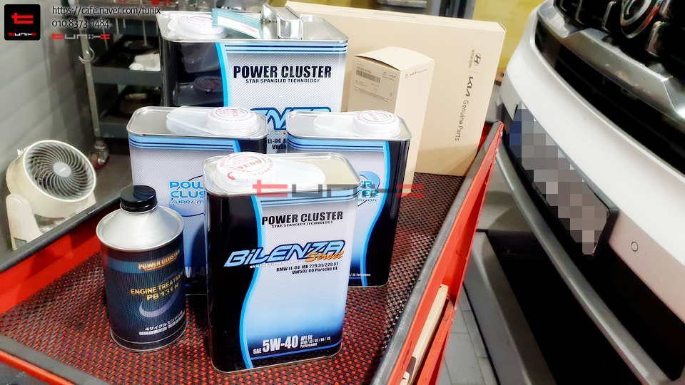 빌렌자스트리트와 PB131R첨가제를 넣고 일차시동후 레벨링까지 해주면 오일 교환작업이 완료됩니다