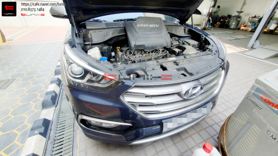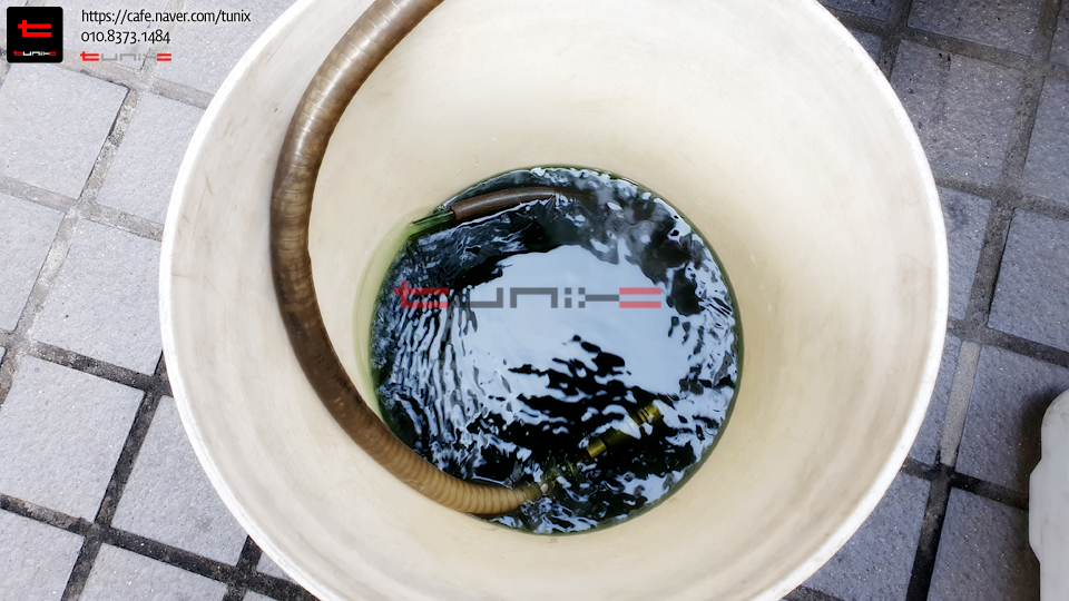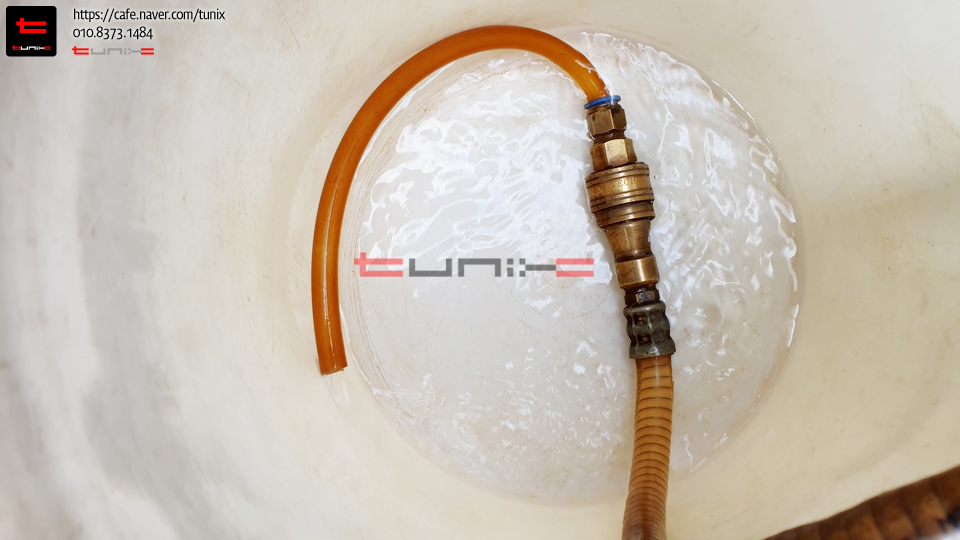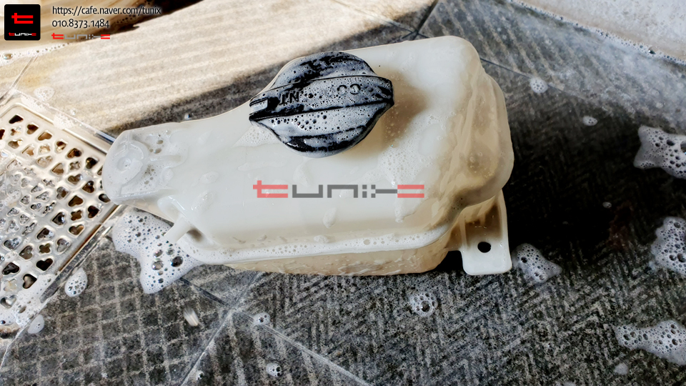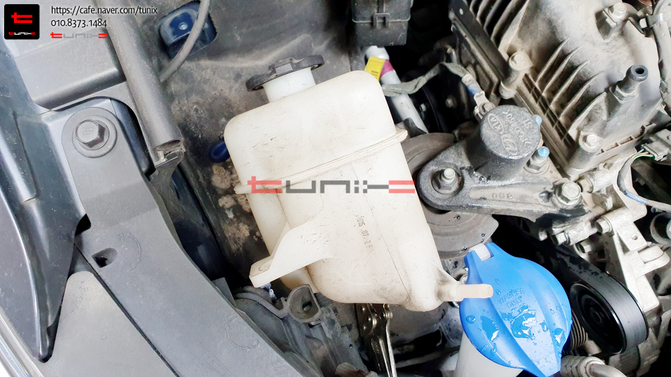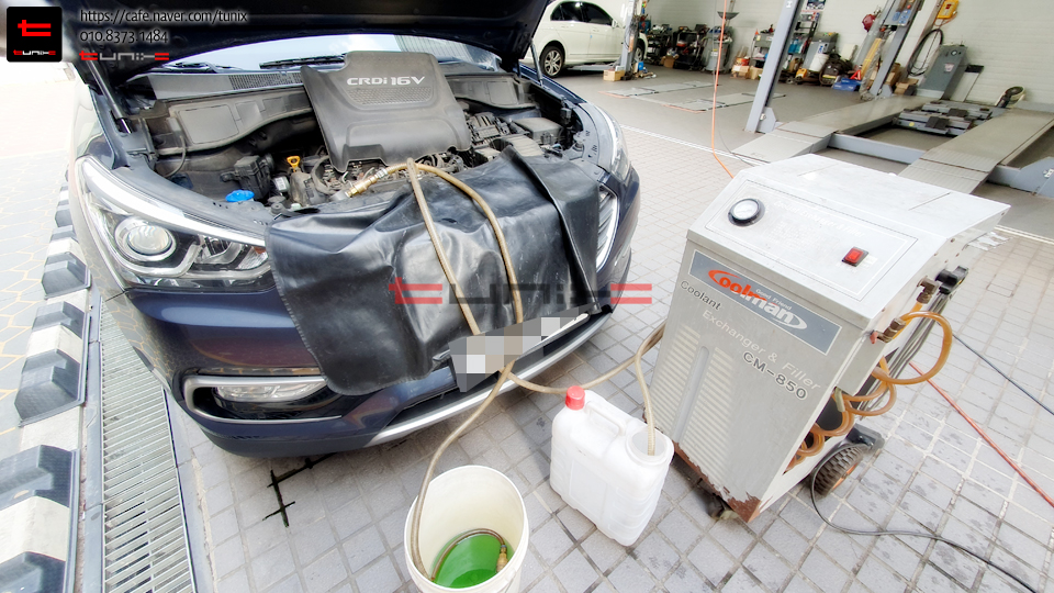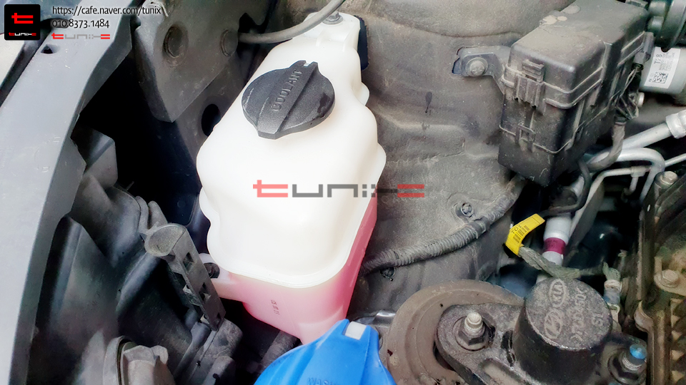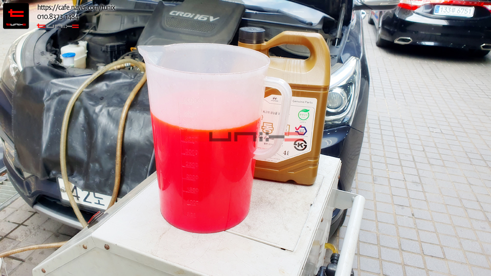 녹색부동액에서 순정핑크색 부동액교환을 위해서 튜닉스로 방문하였습니다