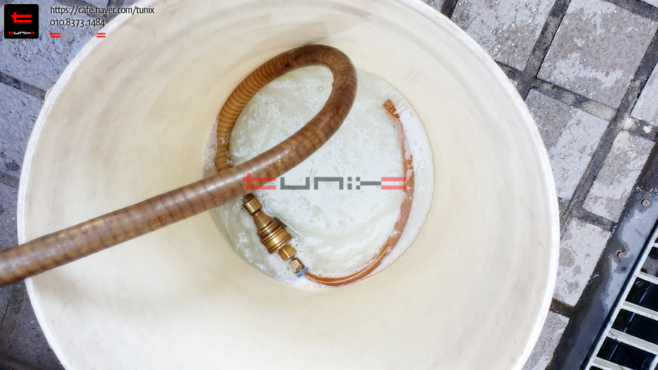 기존 부동액을 깨끗하게 제거하기위해서 순환장비를 연결해줍니다