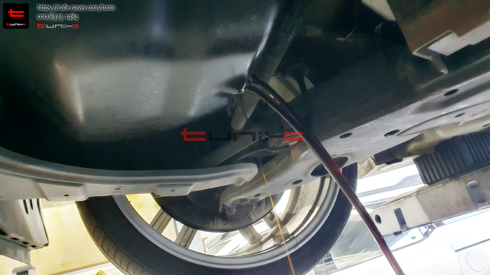 기존오일을 모두빼고 남아 있는 잔유는 전용드레인기를
