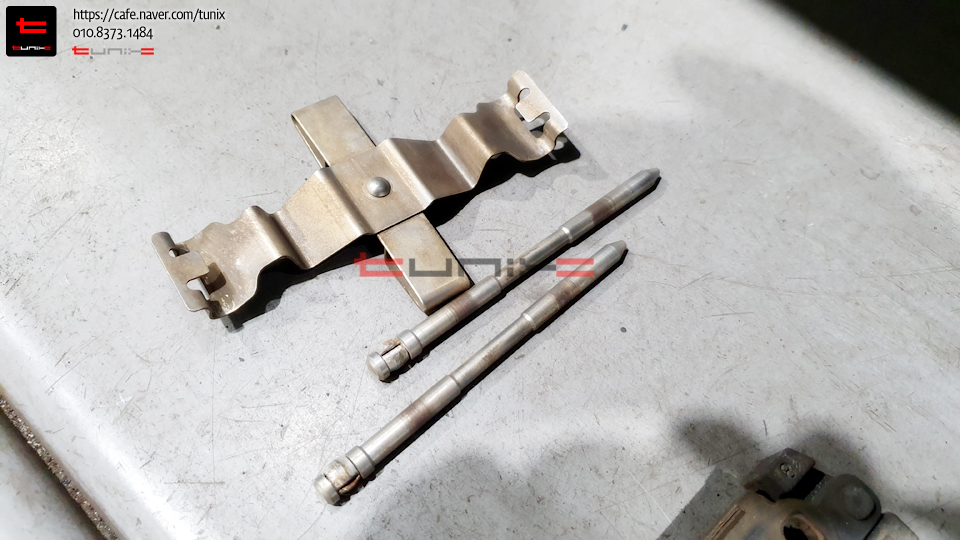 패드교체를 위해서 탈착한 패드핀 리턴클립을 먼저 깨끗히 세척해줍니다