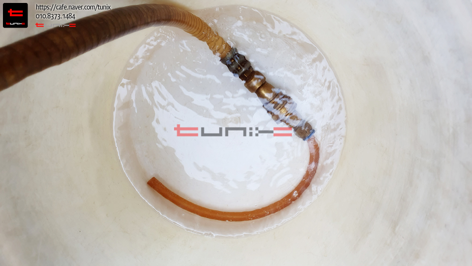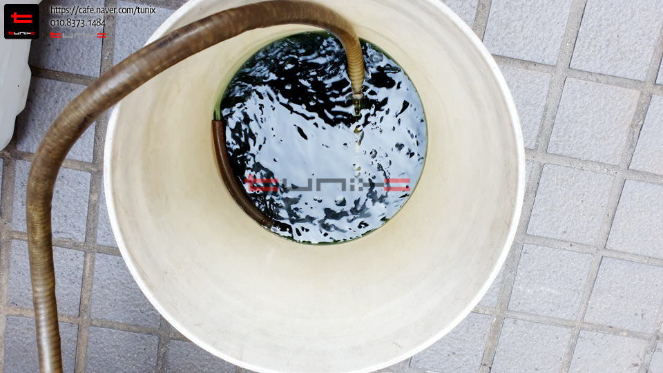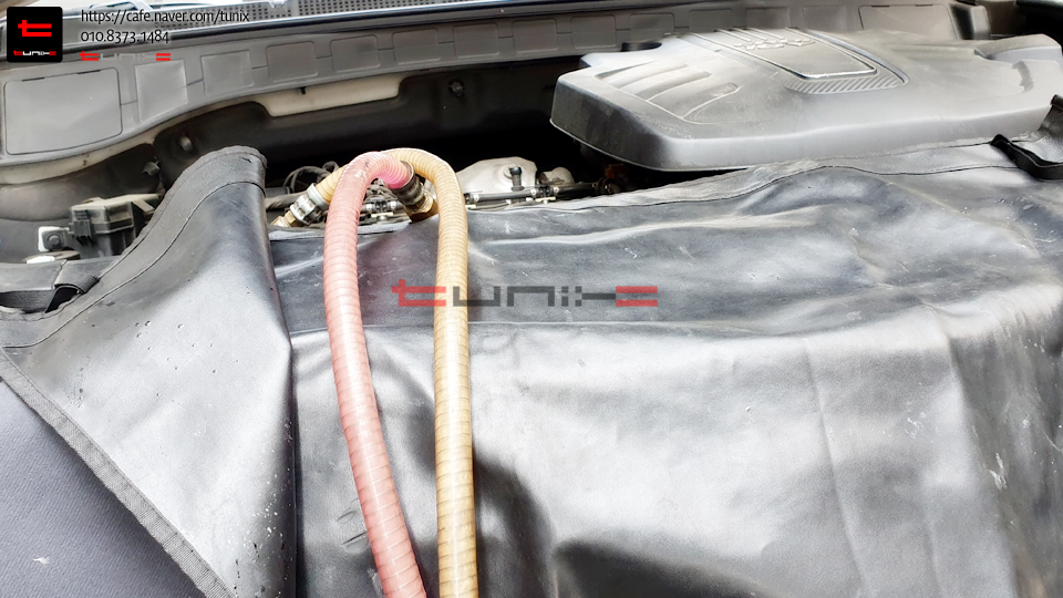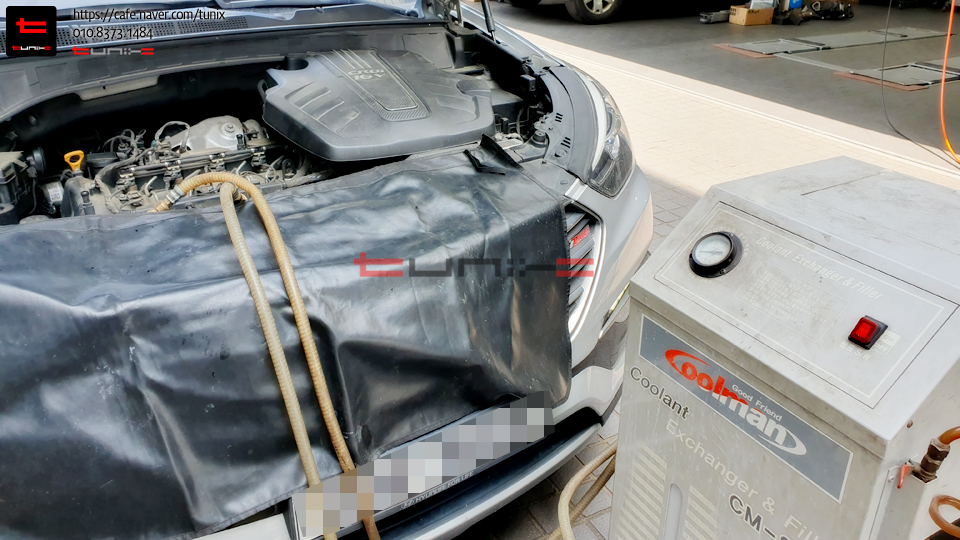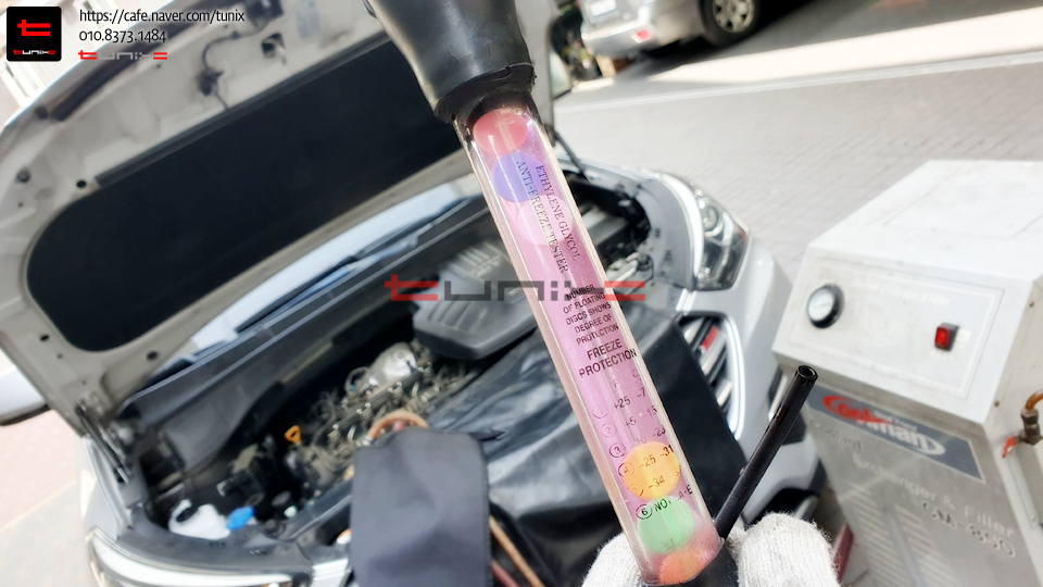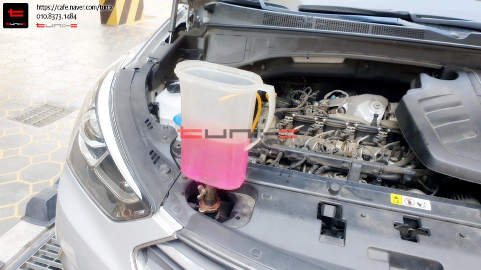 기존 녹색 부동액에서 순정최고급 핑크색 부동액을 교체하기 위해서 튜닉스로 방문하였습니다