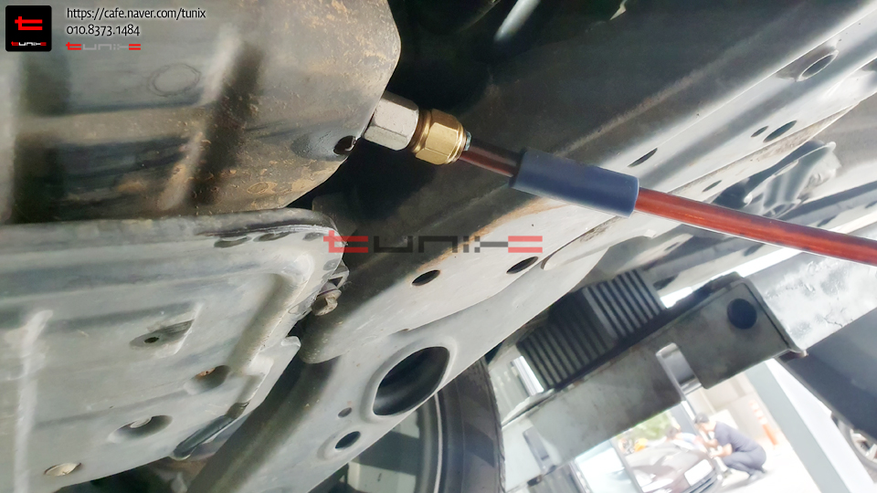 기존오일을 모두빼고 남아 있는 잔유는 전용드레인기를