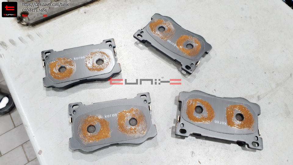 소음과 리턴에 도움을주는 전용그리스를 도포하여 패드를 장착해줍니다