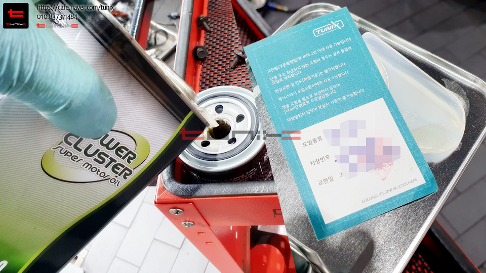잔유제거후 깔끔하게 오일교환하는 튜닉스로 방문하였습니다