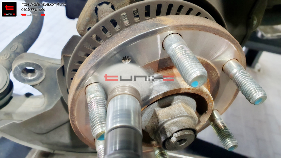 순정 브레이크를 탈착후 허브에 녹을 깨끗히 제거해줍니다