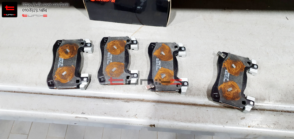 소음과 패드 움직임에 도움을주는 전용그리스를 도포하여 패드를 장착해줍니다