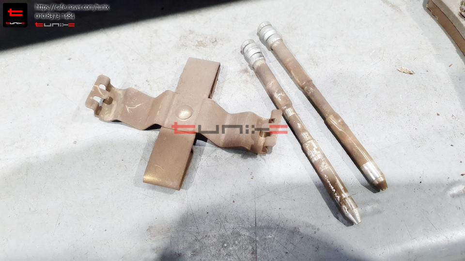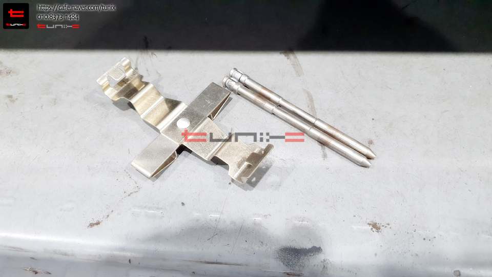 교체를 위해서 탈착한 패드핀과 리턴클립을 먼저 깨끗히 세척해줍니다