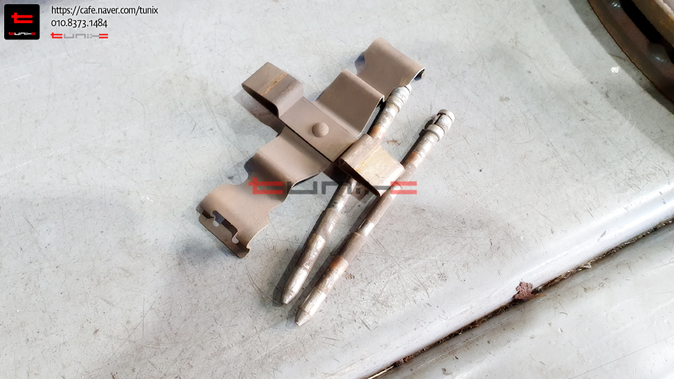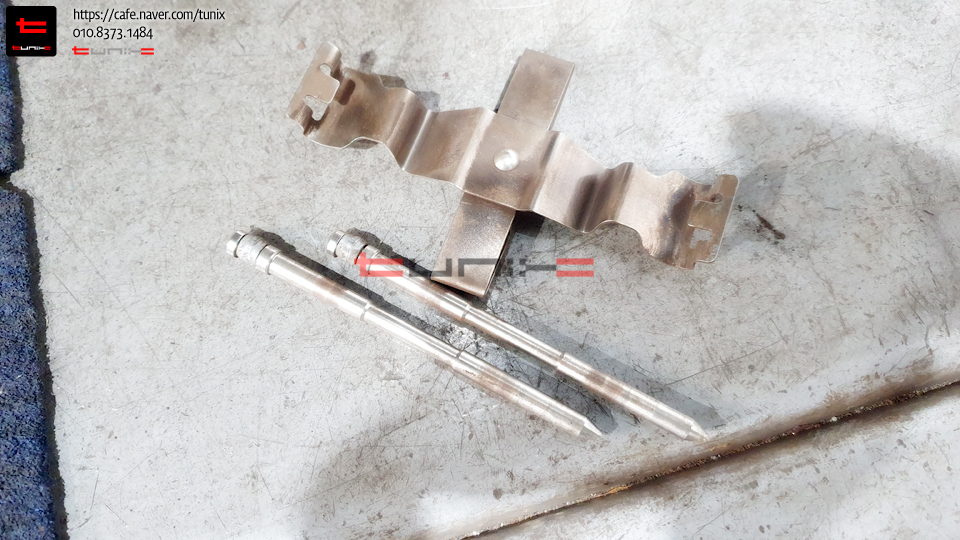 패드교체를 위해서 탈착한 패드핀 리턴클립을 먼저 깨끗히 세척해줍니다