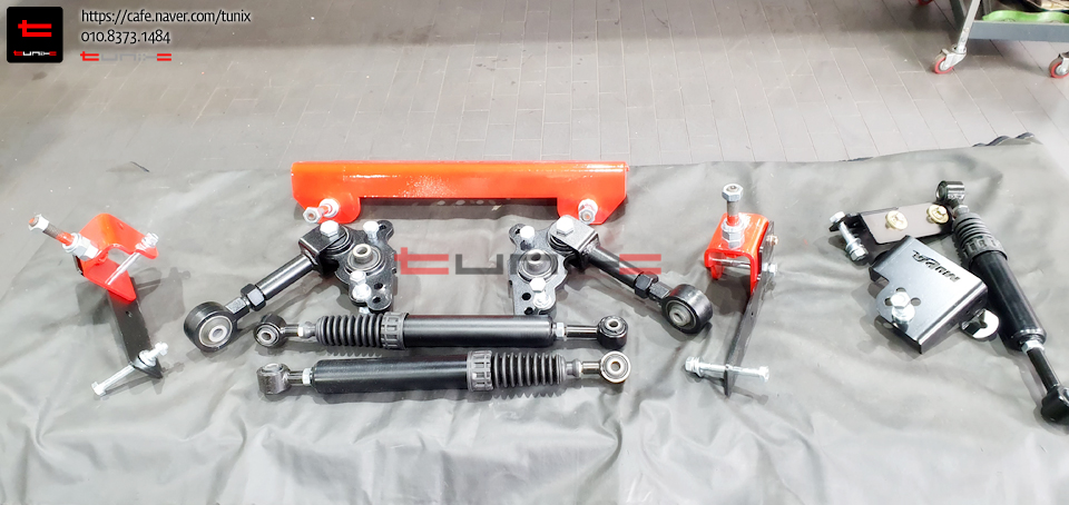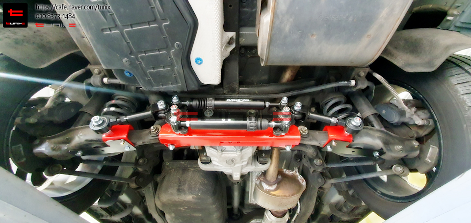 뒤쪽 멤버바 리어암쪽에 머피아 멀티링크 듀얼댐퍼 장착을완료하였습니다