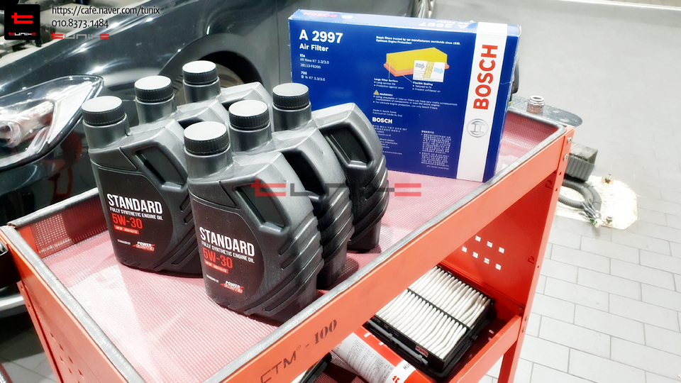 파클스탠다드를 넣고 일차시동후 레벨링까지 해주면 오일 교환작업이 완료됩니다