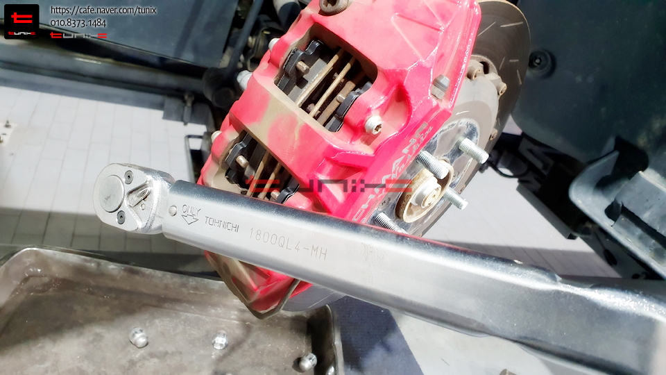 캘리퍼는 토크렌치 볼트본드를 사용하고 꼼꼼히 장착해줍니다
