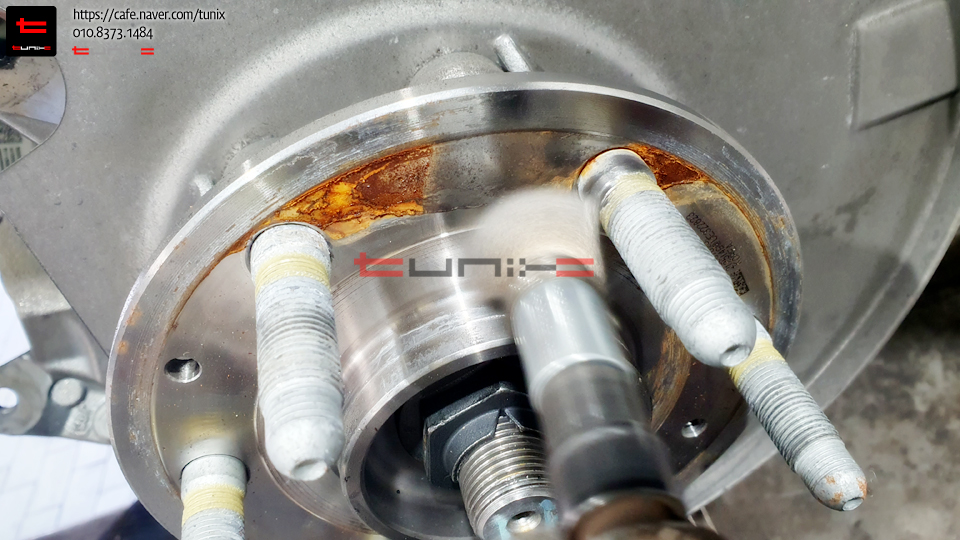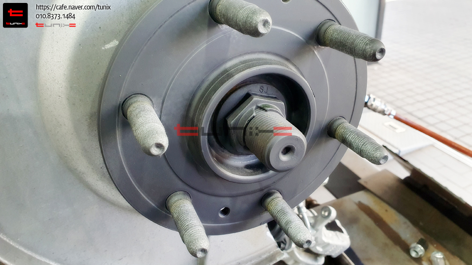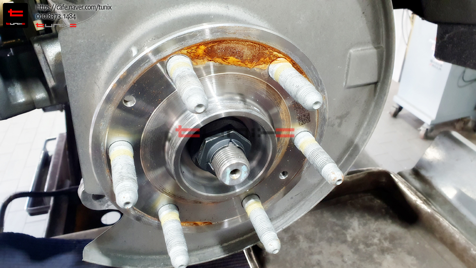 순정 브레이크를 탈착후 허브에 녹을 깨끗히 제거해줍니다