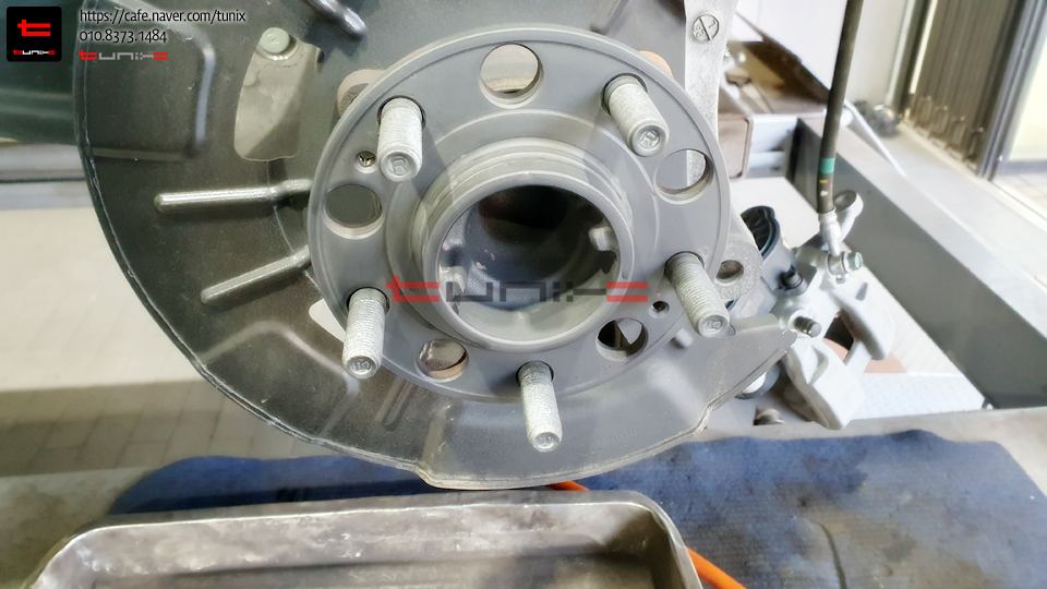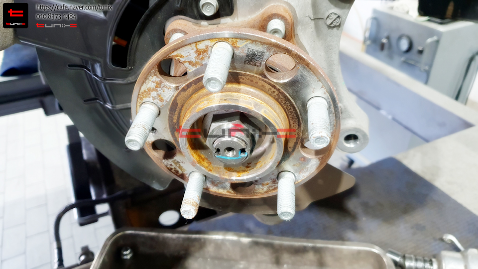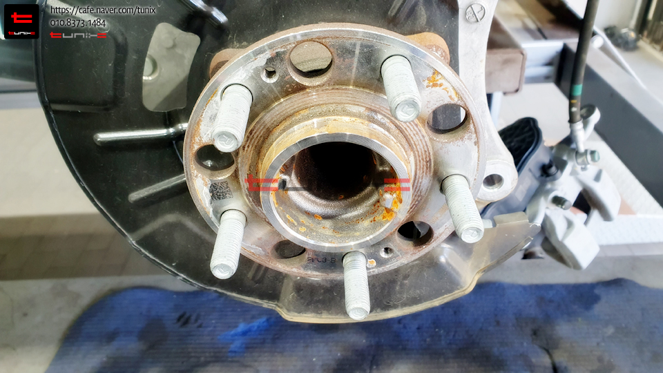 순정 브레이크를 탈착후 허브에 녹을 깨끗히 제거해줍니다