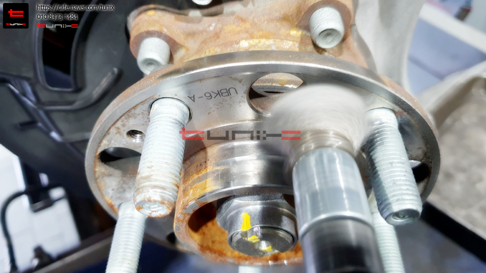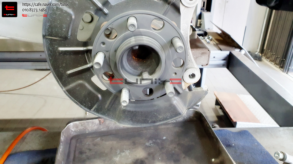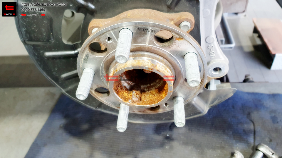 순정 브레이크를 탈착후 허브에 녹을 깨끗히 제거해줍니다